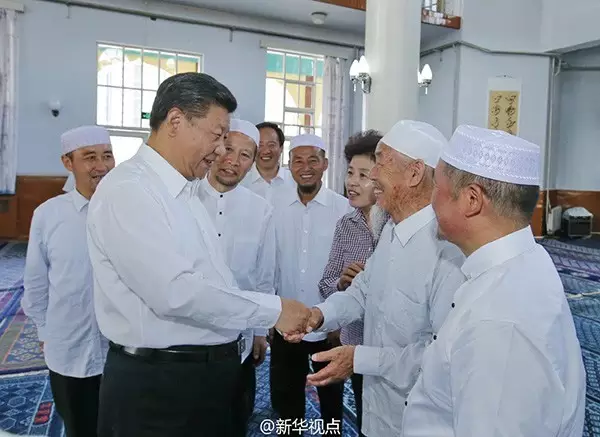 习近平总书记19日上午来到宁夏回族自治区银川市新城清真寺了解宗教活动开展情况。(摄影:新华社记者鞠鹏、李涛)