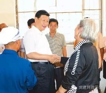 2013年7月11日,习近平在平山县西柏坡革命旧址同当地群众握手交谈。