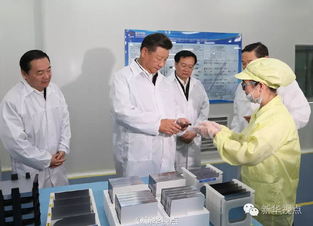 【习近平:光伏产业是青海的一大支柱产业】23日下午,习近平来到国家电投太阳能电力有限公司西宁分公司,考察青海省依托自然资源优势发展清洁能源、推进光伏产业链发展情况。习近平走进太阳能电池生产车间,拿起一块太阳能电池板仔细察看,了解电池板制造工艺、工作原理。习近平强调,青海要抓住人才、技术、资金等关键环节,发展好光伏一条龙全产业链,让清洁能源更好造福人民。