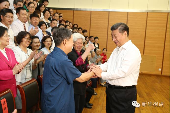 习近平同陈仲韩、陈秋影等几位老师一一握手,愉快回忆往事,还聊起其他老师、同学的近况。习近平说,看到各位老师精神这么好,我心里特别高兴。当年老师对我们要求十分严格,现在回想起来,终生受益。